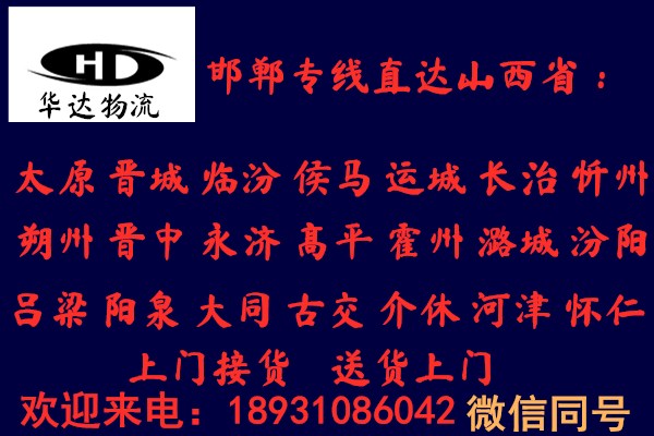 邯鄲到侯馬物流公司運費查詢:18931086042華達物流以一流的服務體系,本著安全,準時,互友,互惠的原則贏得市場,只要一個電話,一切由我公司操辦, 望廣大新老客戶給予大力支持、與我公司聯(lián)絡,我們將竭誠為您提供一切方便,歡迎來人來電咨詢!
